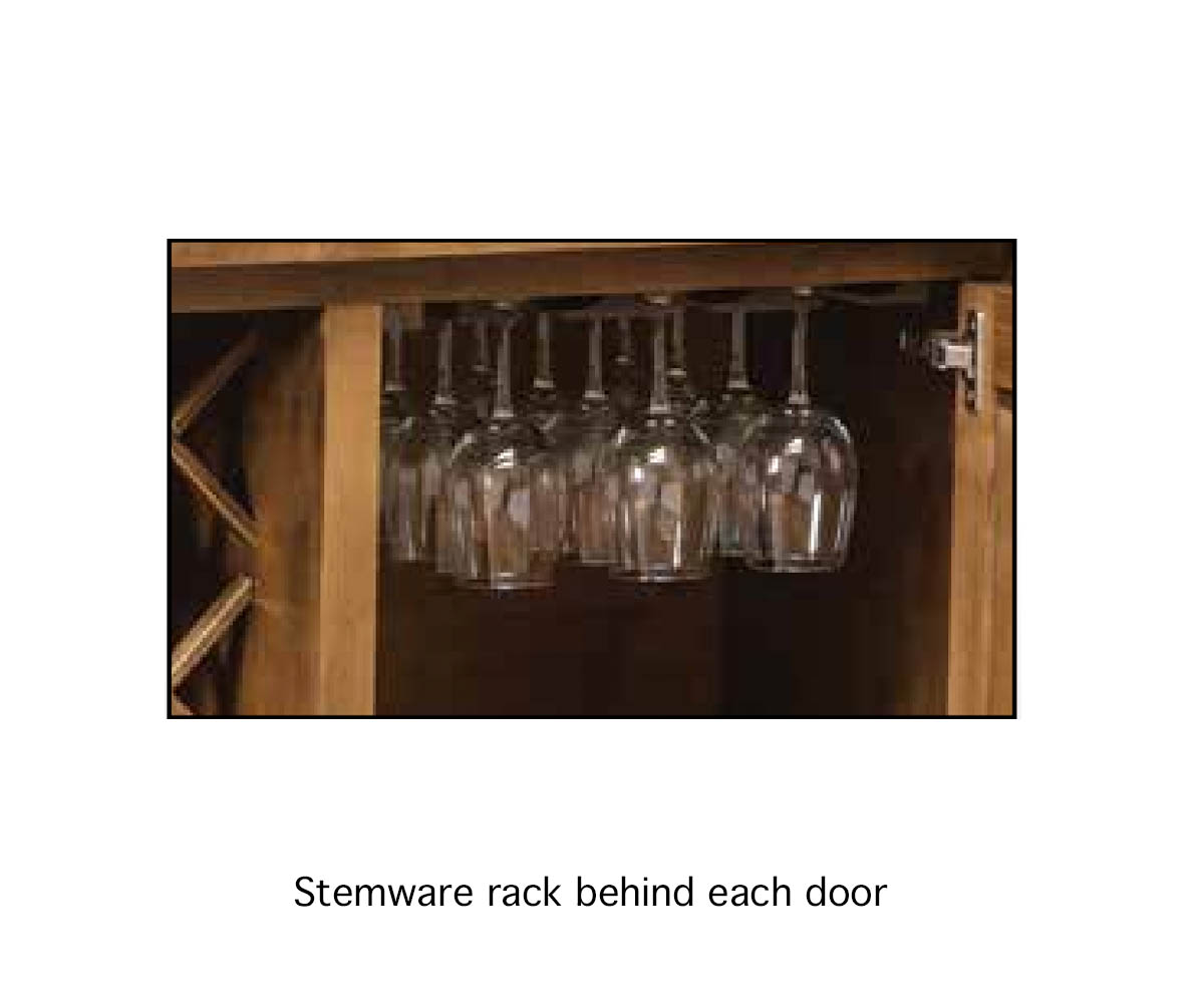 • Stemware rack behind each of the doors