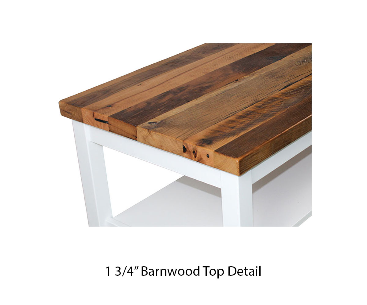 • 1¾” thick barn wood top detail